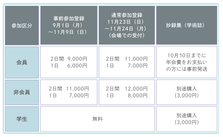 会員については、2025年度年会費を2025年10月10日(金)までに納付していただくとシンポジウム前に送付いたします。以降に入金された場合は、会場でのお渡しとなりますので受付でお申し出ください。